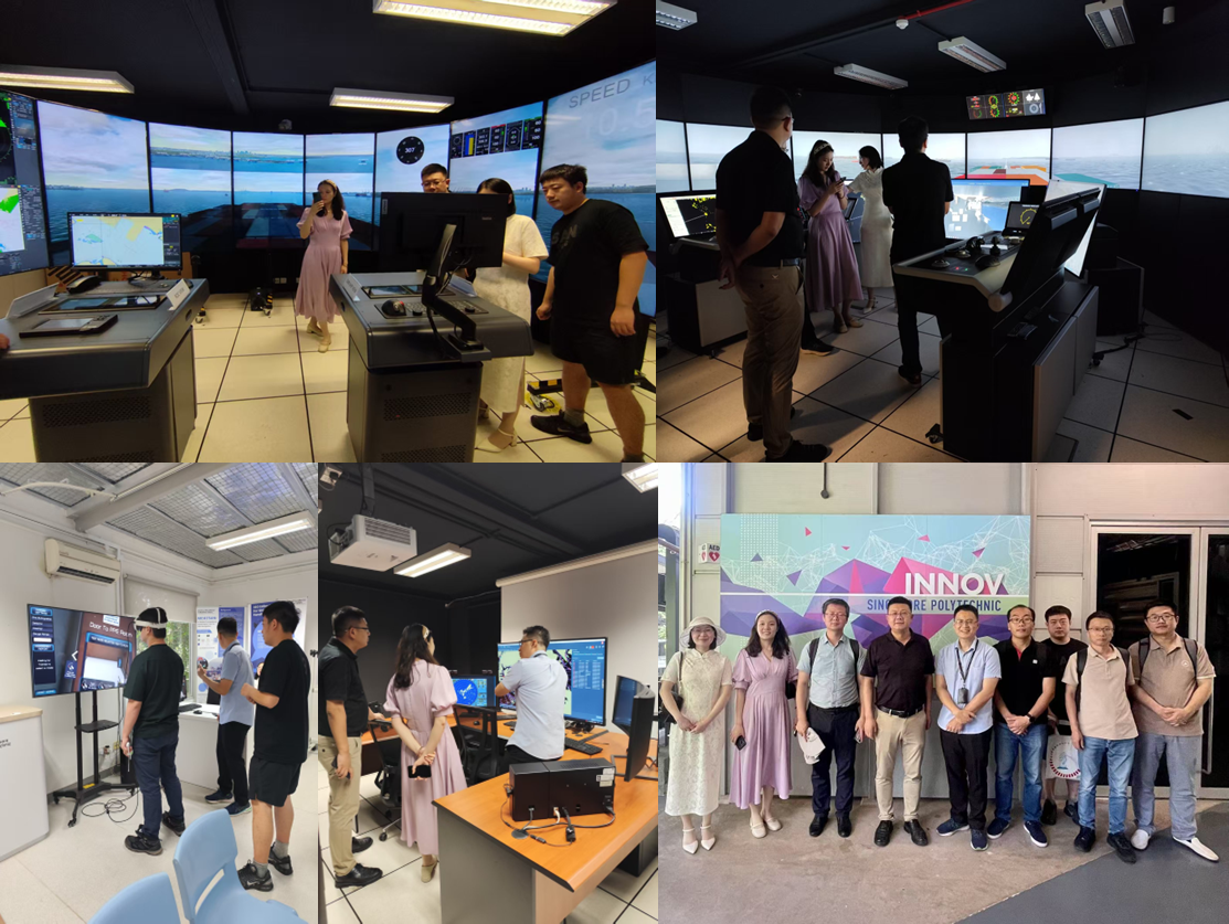 On the afternoon of May 24, the delegation, together with the team from SIT, visited Singapore Polytechnic. They mainly exchanged views on marine engineering, maritime education and training, and visited facilities such as unmanned ship systems, marine engine simulators, maritime ship monitoring systems, and a ship refueling training laboratory based on augmented reality (AR) technology.