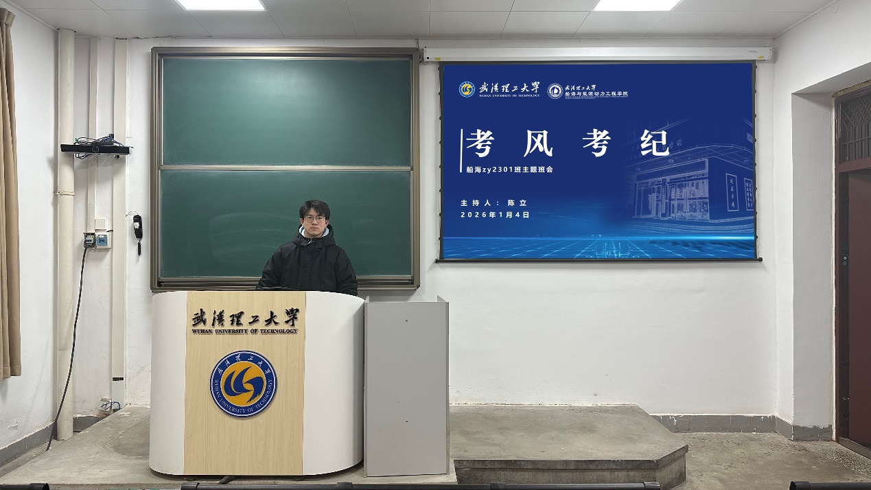 2026年1月4日,船海zy2301在主楼316教室召开“考风考纪教育”主题班会,全体同学参会。班会由陈立主持。
