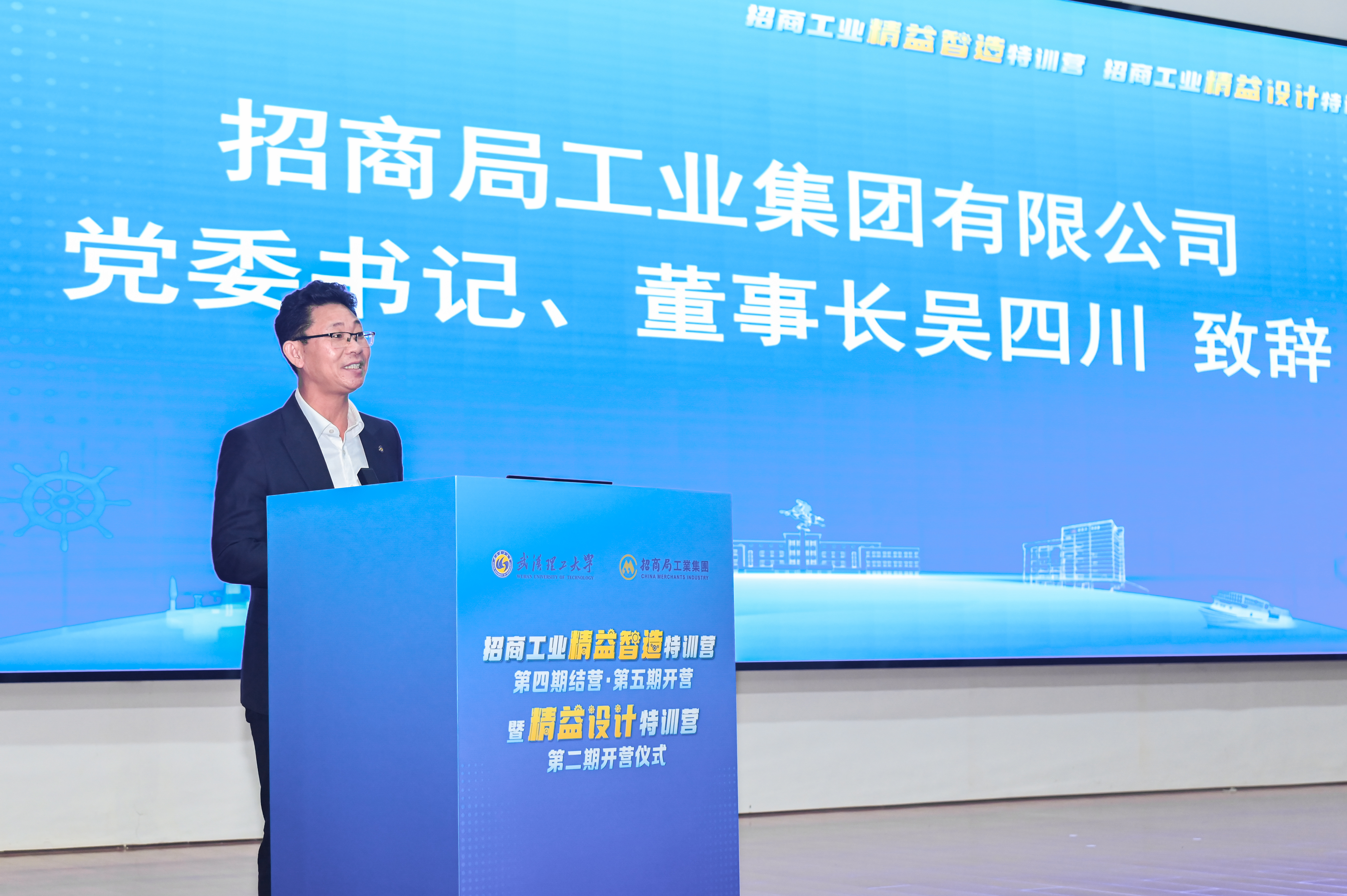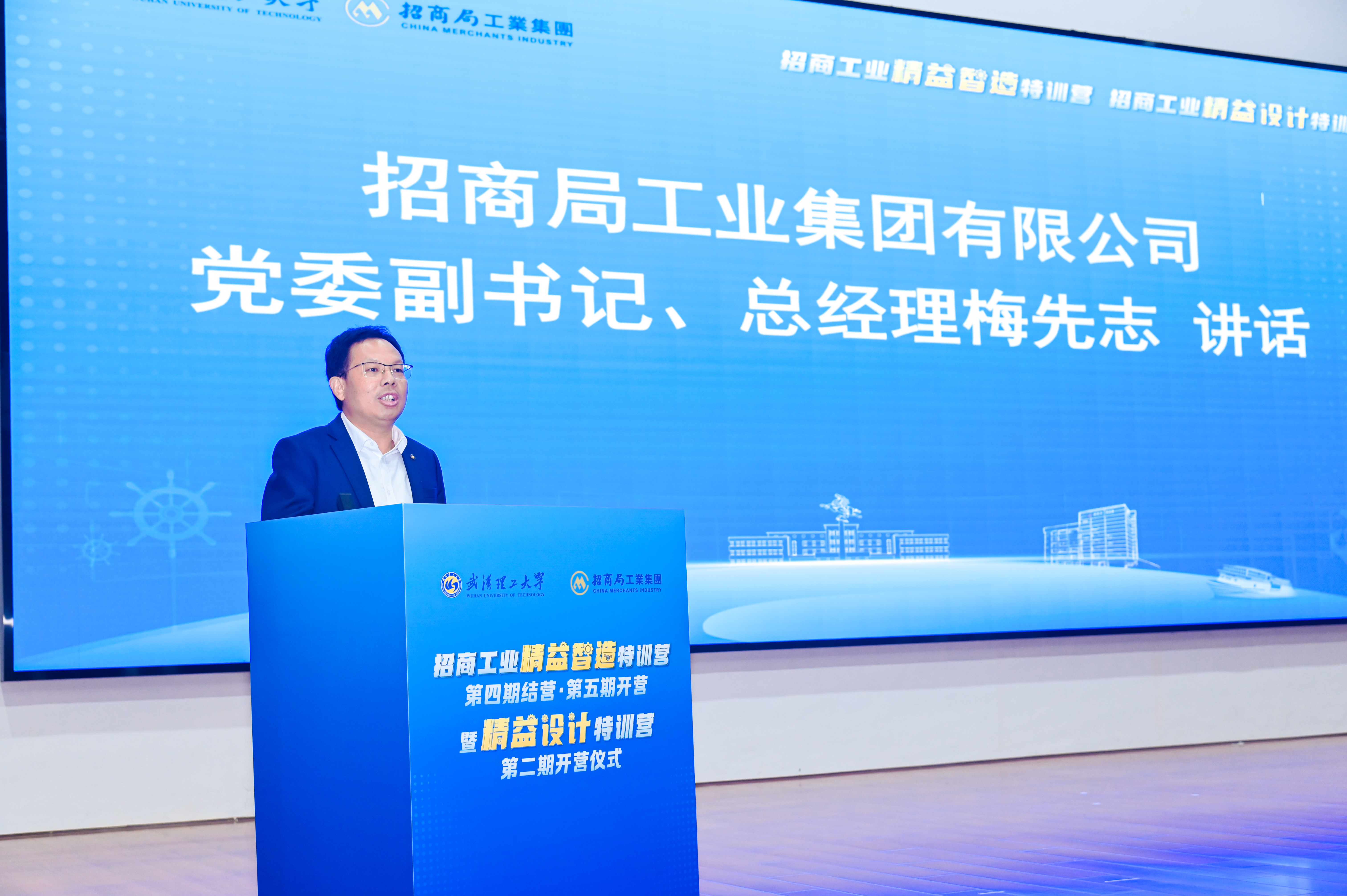 孟芳兵代表公司向与会嘉宾与新学员表示热烈欢迎,向圆满完成培训的全体学员表示衷心祝贺。他强调,公司将以本次特训营为新的起点,建立健全校企双方常态化沟通合作机制,在校企党建联建、人才联合培养、平台联合共建等方面持续深化合作,推进教育科技人才一体化改革取得新突破,在以中国式现代化全面推进强国建设、民族复兴中书写武汉理工与招商工业担当有为的崭新篇章。